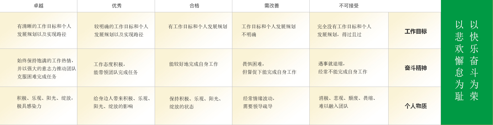 激情、誠(chéng)信、創(chuàng)新、包容、擔(dān)當(dāng)!